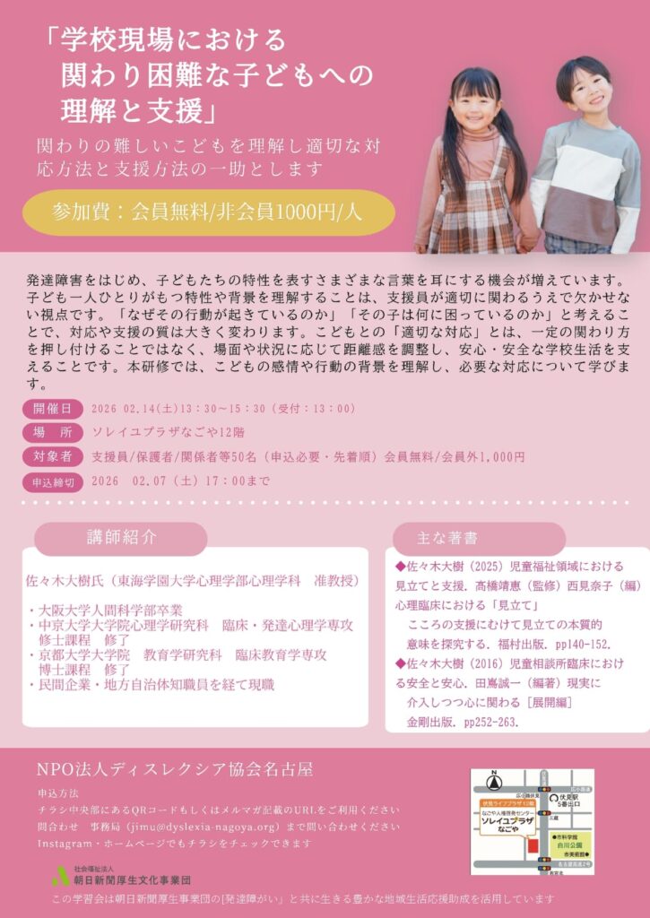 NPO法人ディスレクシア協会名古屋のウェブサイト