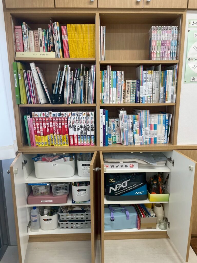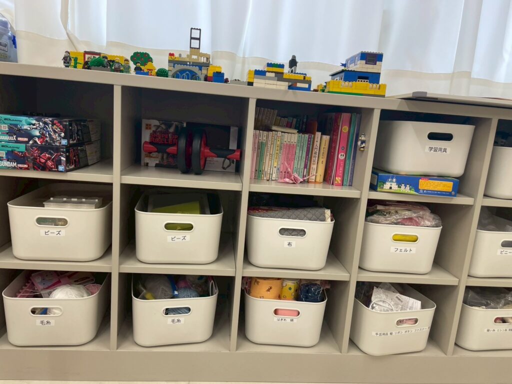 お部屋には、手芸用の材料や道具がたくさんあるんですが、これも子どもたちのリクエストでそろえてきたもの。キーボードやギターなどの楽器、ちょっとしたキッチンもあって、簡単なお料理をすることもできます。絵画セットでお絵かきする子もいれば、本棚のマンガや絵本、図鑑や学校で使う資料集を手にとる子もいます。
